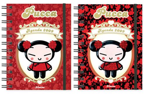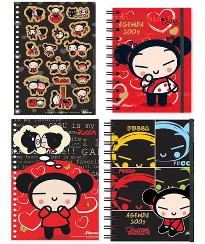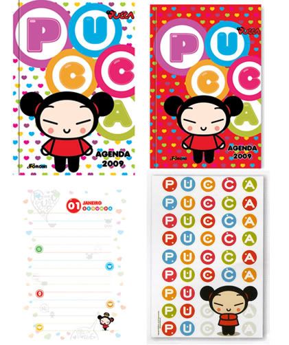 O ano de 2009 vai começar super animado com essas lindas agendas da Pucca. Tem vários modelos de dois tamanho: o mini que dá para levar tranquilamente na bolsa e o tamanho tradicional. Cada agenda vem com lindos adesivos metalizados e as páginas são super cutes. A novidade é uma maletinha com o formato do rostinho da Pucca que dentro vem uma mini agenda e uma caneta!